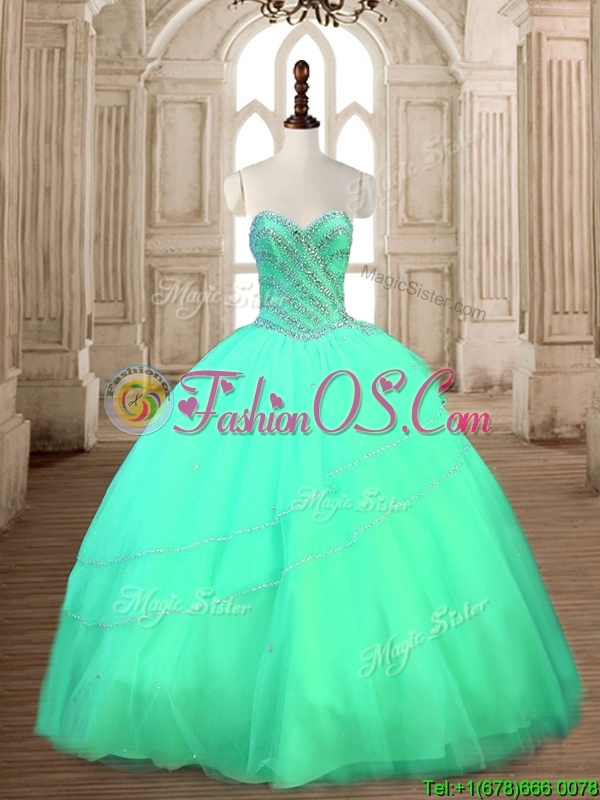 Home >  Quinceanera Dresses >  Fast Delivery Quinceanera Dresses > Modest Tulle Beaded Sweet 16 Dress in Turquoise
