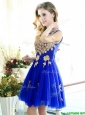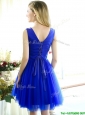Modest V Neck Short  Prom Dresses  with Rhinestone and Appliques