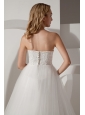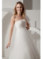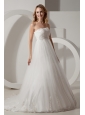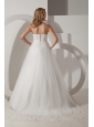 Modest Wedding Dress A-line Strapless Appliques Brush Train Taffeta and Tulle