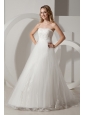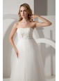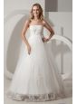 Home >  Wedding Dresses >  Elegant Wedding Dresses > Modest Wedding Dress A-line Strapless Appliques Brush Train Taffeta and Tulle