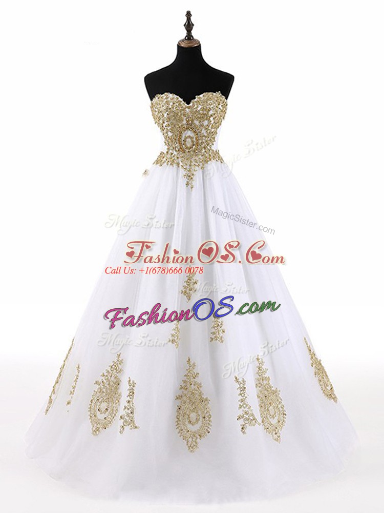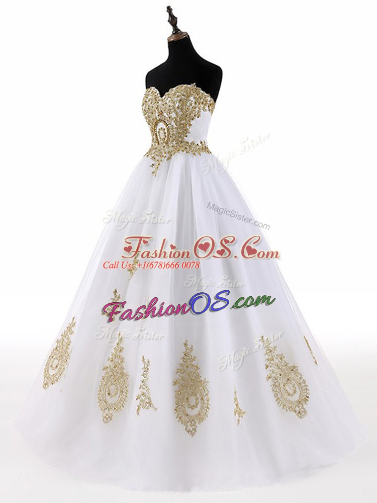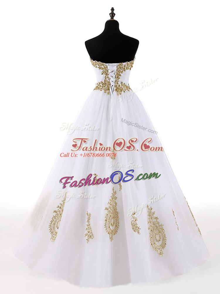 Modest White A-line Beading and Appliques 15 Quinceanera Dress Lace Up Tulle Sleeveless Floor Length