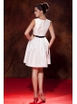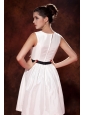 Modest White A-line / Princess Prom Dress Bateau Mini-length Taffeta