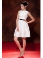 Home >  Prom Dresses >  Modest Prom Dresses > Modest White A-line / Princess Prom Dress Bateau Mini-length Taffeta