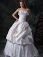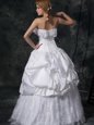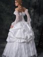 Modest White Sleeveless Floor Length Lace and Appliques and Pick Ups Lace Up Wedding Gowns