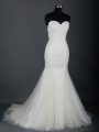 Modest White Sweetheart Neckline Lace Wedding Gowns Sleeveless Zipper