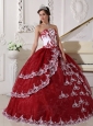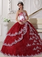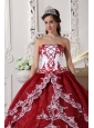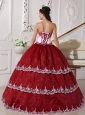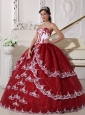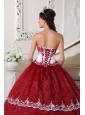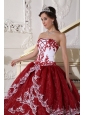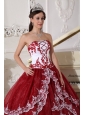 Modest Wine Red and White Quinceanera Dress Strapless  Organza Appliques Ball Gown