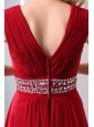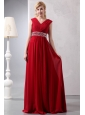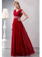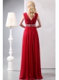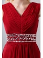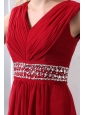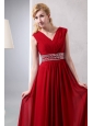 Modest Wine Red Empire V-neck Plus Size Prom Dress Floor-length Chiffon Beading