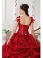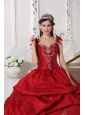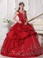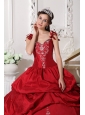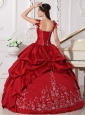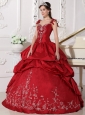 Home >  Quinceanera Dresses >  Discount Quinceanera Dresses > Modest Wine Red Quinceanera Dress Straps Floor-length Taffeta Embroidery Ball Gown