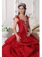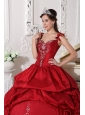 Modest Wine Red Quinceanera Dress Straps Floor-length Taffeta Embroidery Ball Gown
