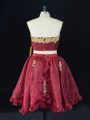 Modest Wine Red Sleeveless Organza Zipper Evening Dress for Prom and Party