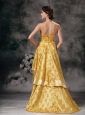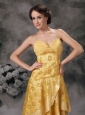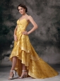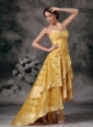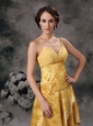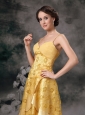 Home >  Special Occasion Dresses >  Homecoming Dresses > Modest Yellow A-line Straps Homecoming Dress Taffeta Lace Brush Train