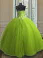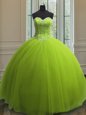 Modest Yellow Green Lace Up Sweetheart Beading and Sequins 15th Birthday Dress Tulle Sleeveless