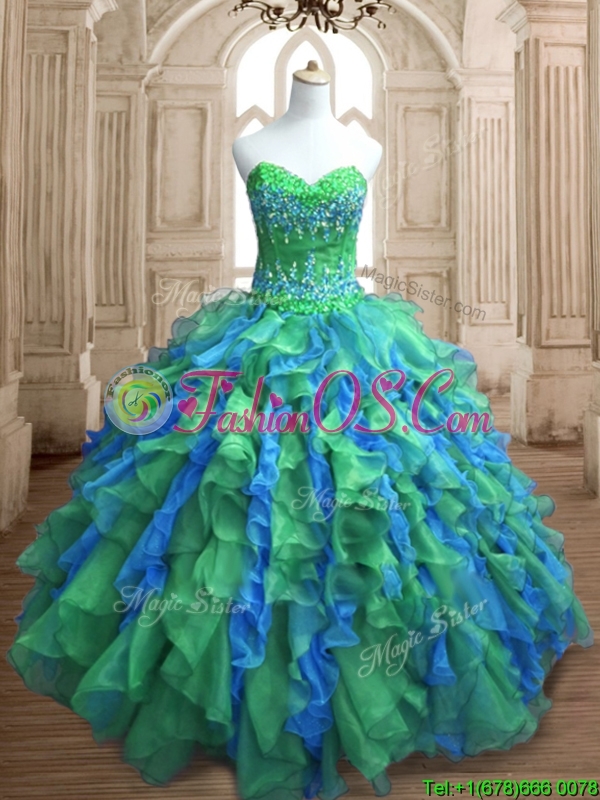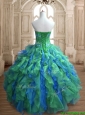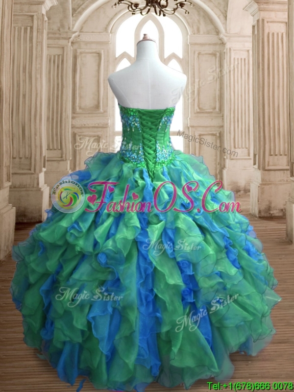 Most Popular Applique and Ruffled Quinceanera Dress in Green and Blue