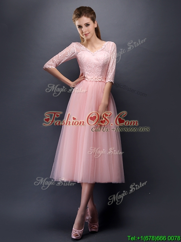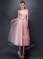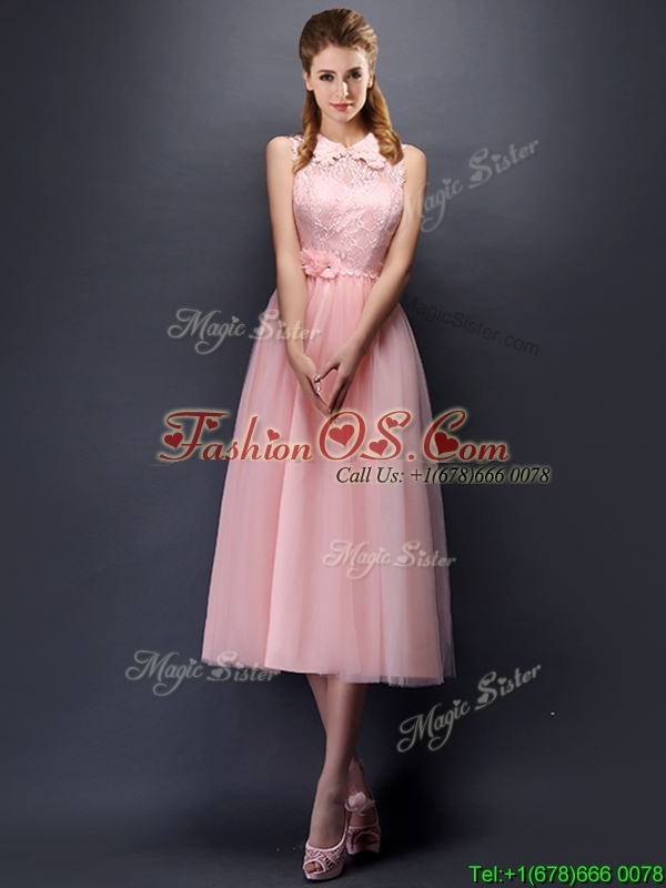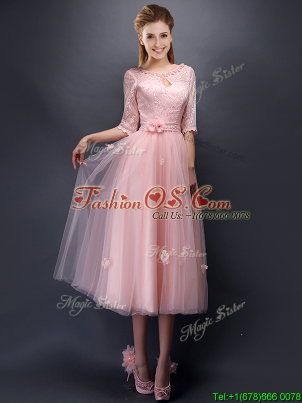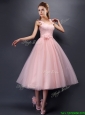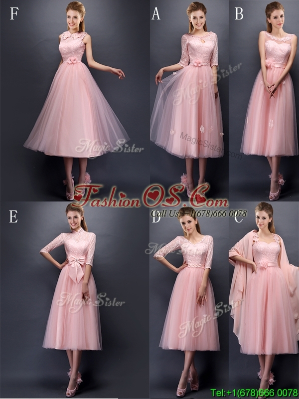 Most Popular Baby Pink Tulle Bridesmaid Dress in Tea Length