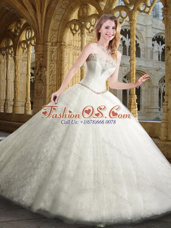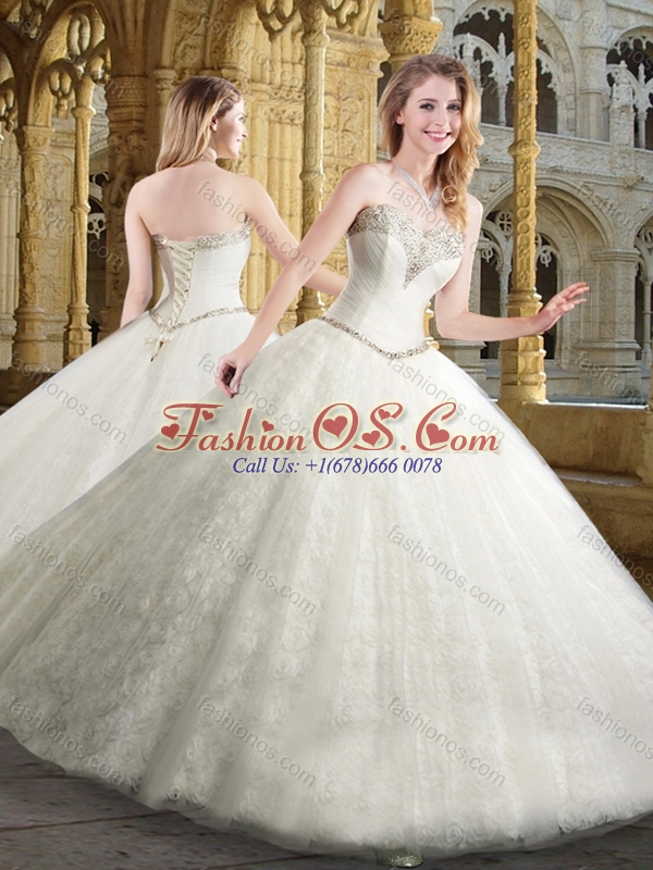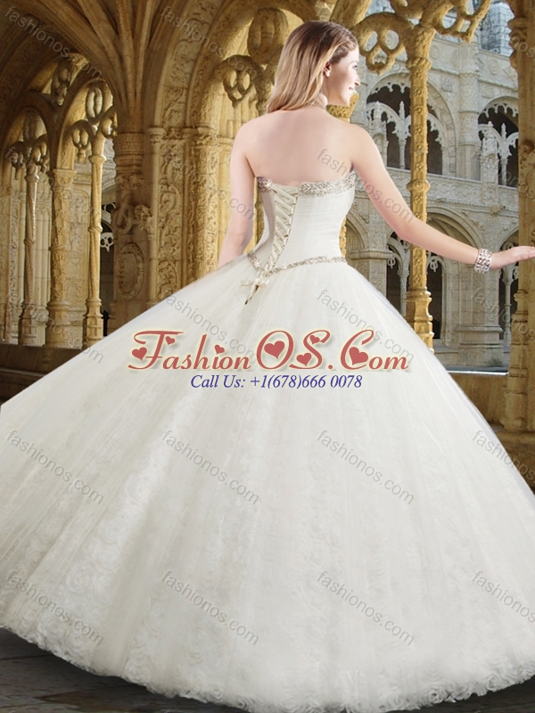 Most Popular Ball Gown Sweetheart White Wedding Dresses with Beading