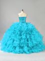 Most Popular Ball Gowns Quince Ball Gowns Aqua Blue Sweetheart Organza Sleeveless Floor Length Lace Up
