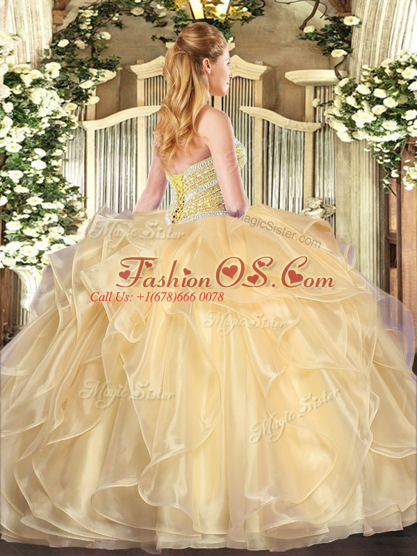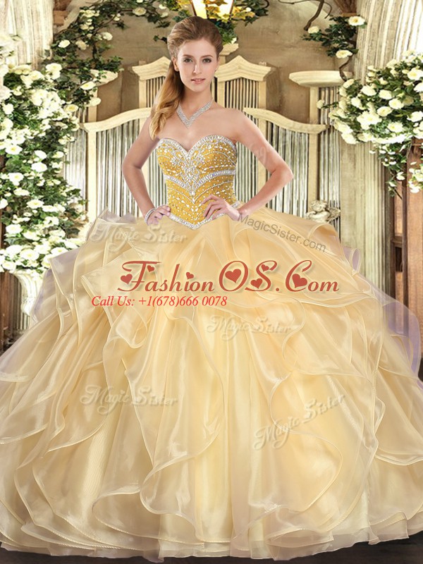 Most Popular Ball Gowns Quince Ball Gowns Champagne Sweetheart Organza Long Sleeves Floor Length Lace Up