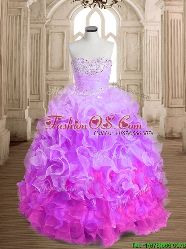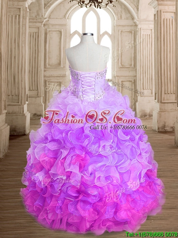 Most Popular Beaded and Ruffled Colorful Quinceanera Dress in Organza