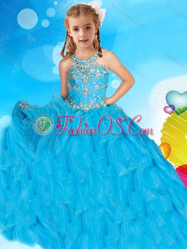 Most Popular Beaded and Ruffled Little Girl Pageant Dress with Scoop