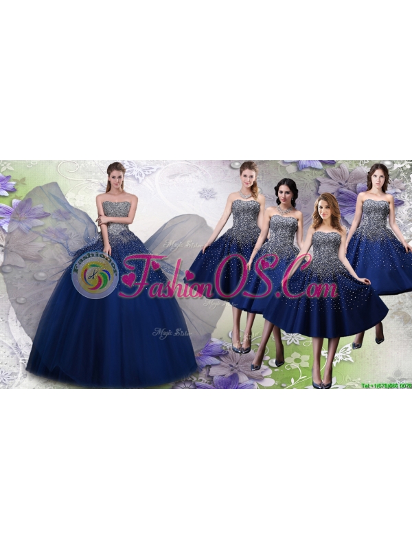 Home >  Quinceanera Dresses >  Quinceaneara Package > Most Popular Beaded Big Puffy Quinceanera Dress and Elegant Tea Length Navy Blue Dama Dresses