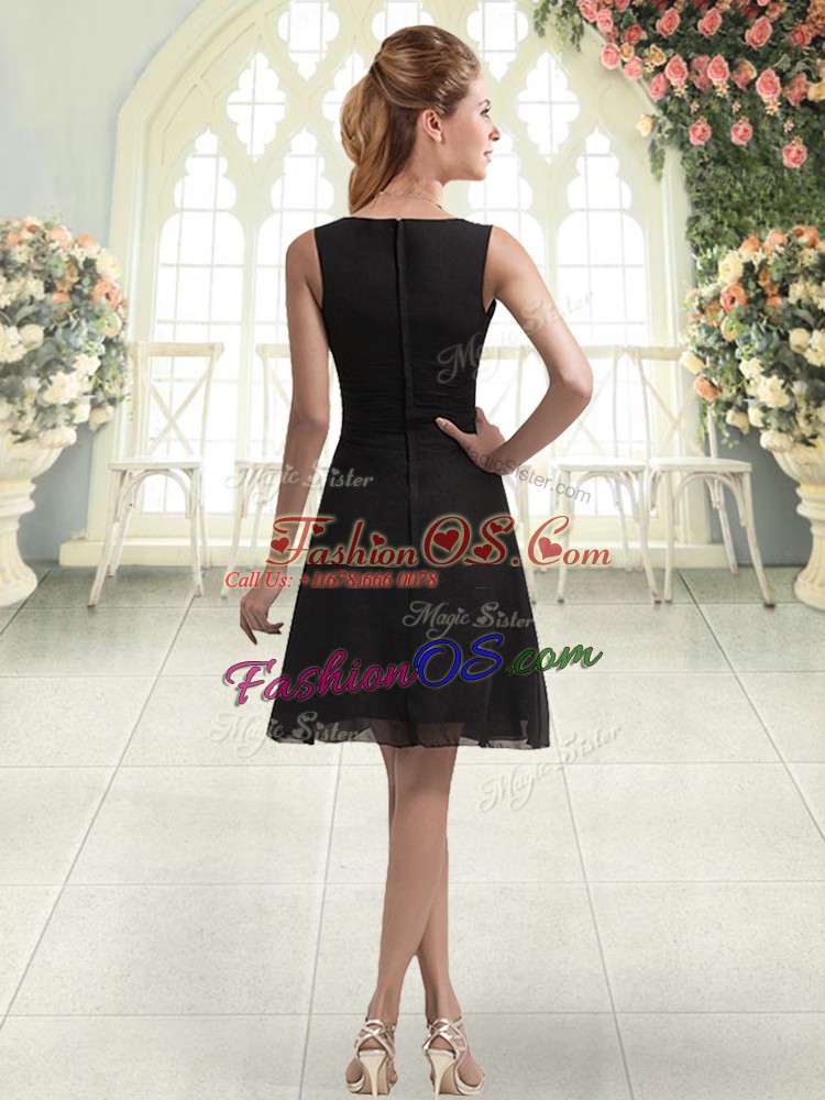 Most Popular Black Chiffon Zipper V-neck Sleeveless Mini Length Dress for Prom Beading