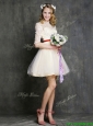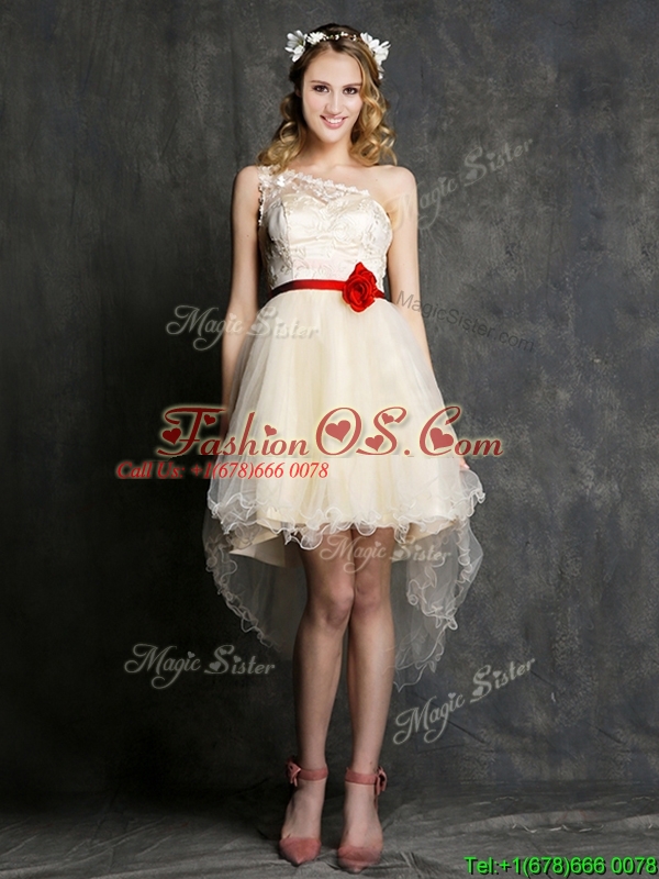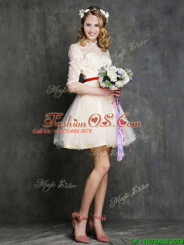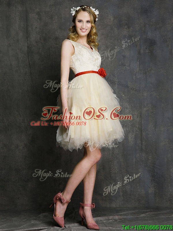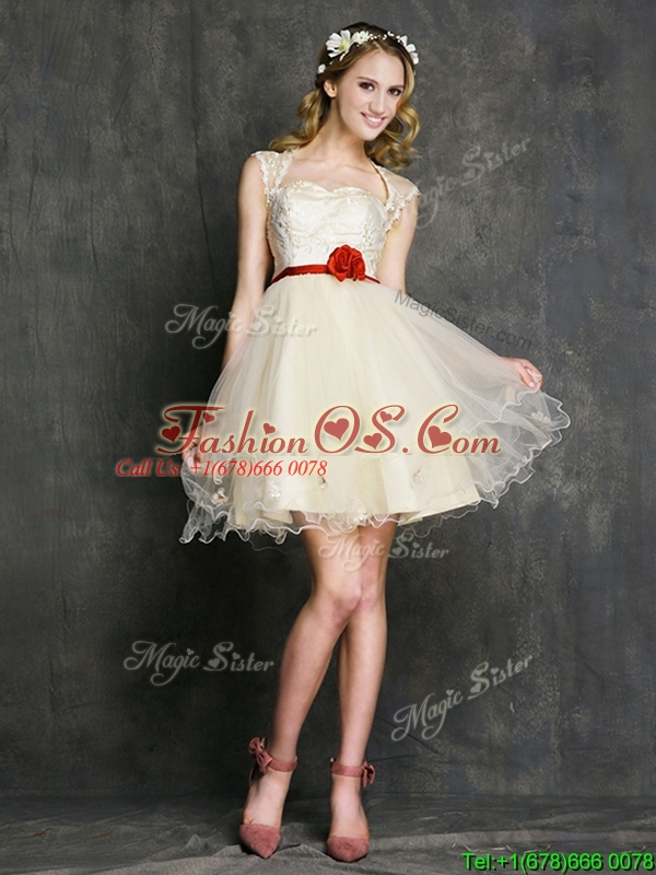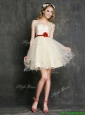 Most Popular Champagne Mini Length Dama Dress with Belt