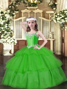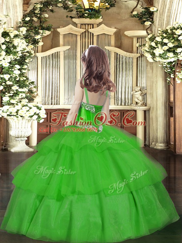 Most Popular Floor Length Ball Gowns Sleeveless Green Child Pageant Dress Lace Up