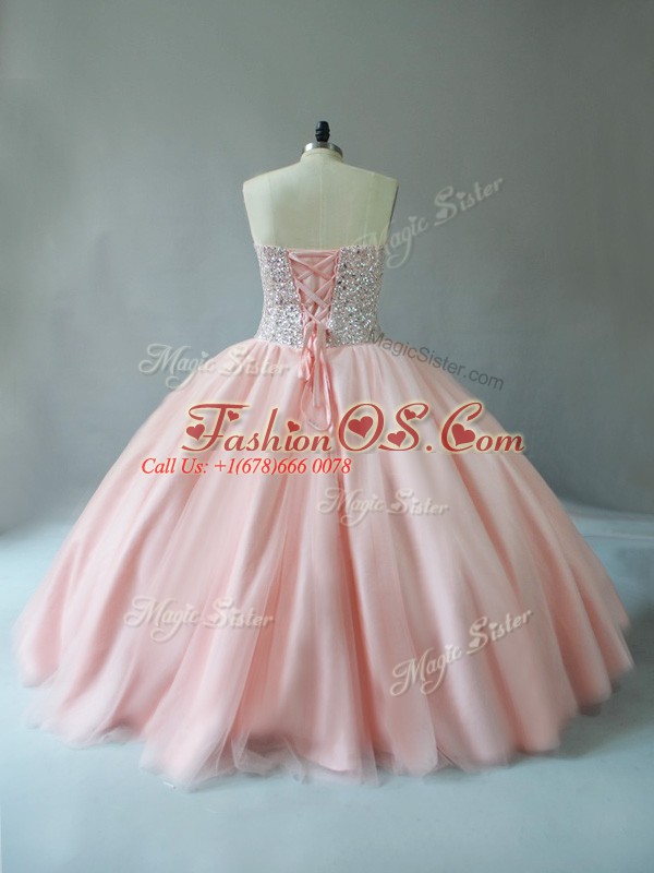 Most Popular Floor Length Ball Gowns Sleeveless Peach Sweet 16 Quinceanera Dress Lace Up