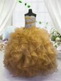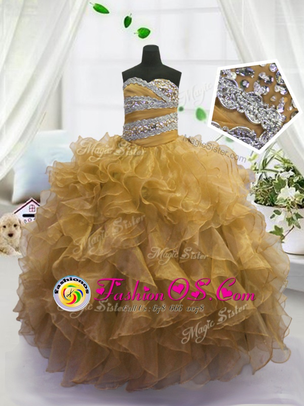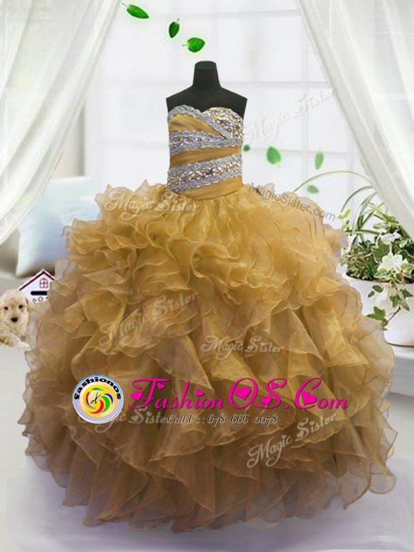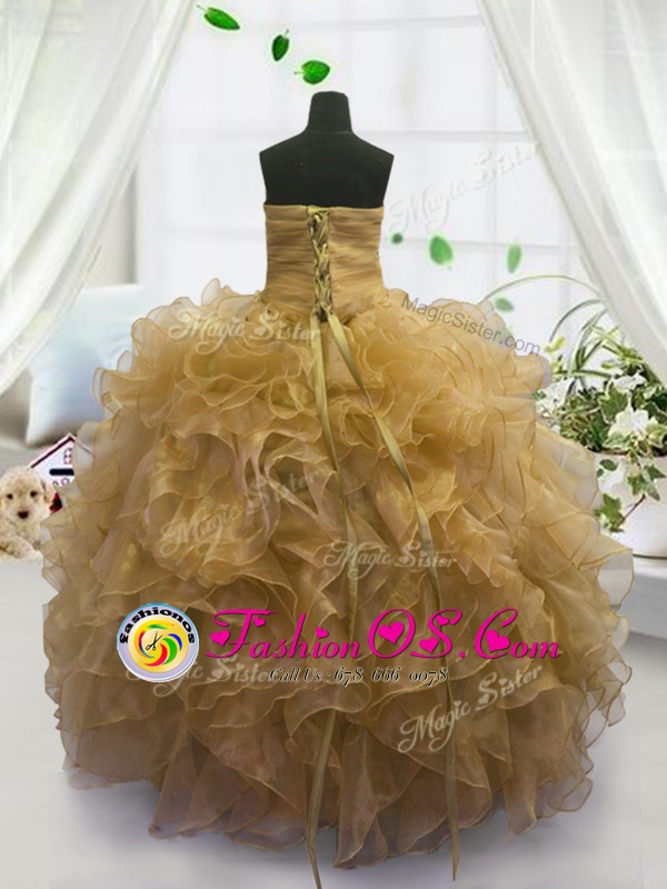 Home >  Special Occasion Dresses >  Mini Quinceanera Dresses > Most Popular Floor Length Gold Little Girls Pageant Dress Wholesale Sweetheart Sleeveless Lace Up