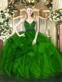 Most Popular Floor Length Green Quinceanera Dress Organza Sleeveless Beading and Ruffles