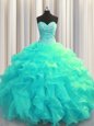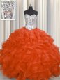 Most Popular Floor Length Lace Up Quince Ball Gowns Red and In for Military Ball and Sweet 16 and Quinceanera with Beading and Ruffles