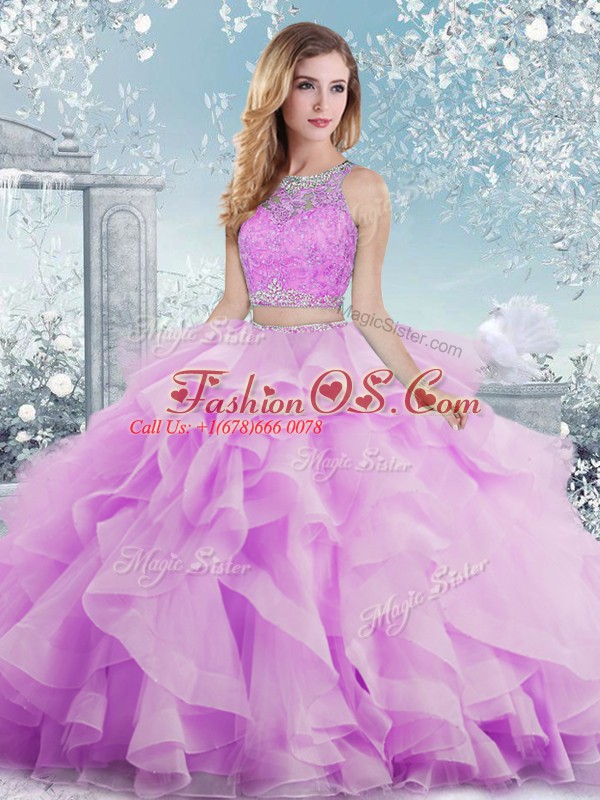 Most Popular Floor Length Lilac Sweet 16 Dress Scoop Sleeveless Clasp Handle