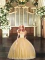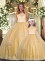 Most Popular Gold Scoop Neckline Lace and Appliques Sweet 16 Dresses Sleeveless Clasp Handle