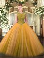 Most Popular Gold Zipper Scoop Beading Sweet 16 Dress Tulle Sleeveless