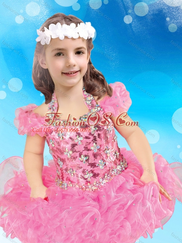 Home >  Special Occasion Dresses >  New Style Little Girl Pageant Dresses > Most Popular Halter Top Organza Short Little Girl Pageant Dress in Rose Pink