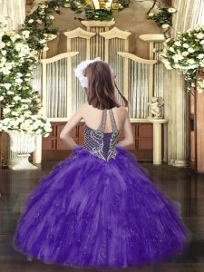 Most Popular Halter Top Sleeveless Tulle Little Girls Pageant Dress Beading and Ruffles Lace Up