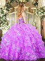 Most Popular Lavender Lace Up Sweetheart Ruffled Layers Quinceanera Dress Organza Sleeveless