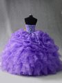 Most Popular Lavender Organza Lace Up Sweetheart Sleeveless Floor Length Quince Ball Gowns Beading and Ruffles