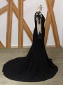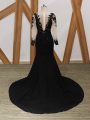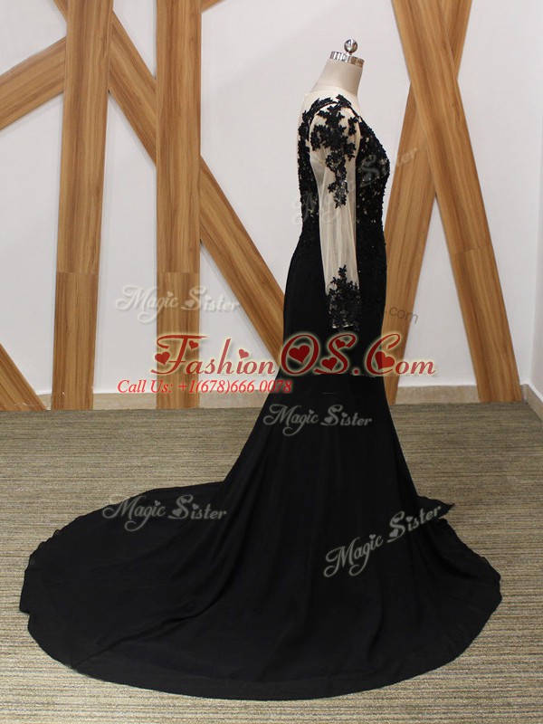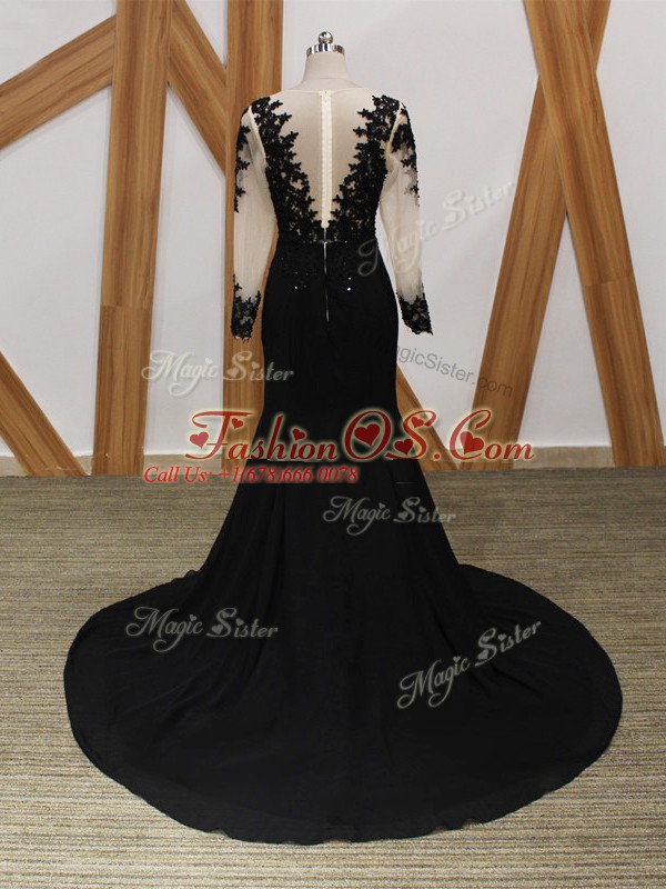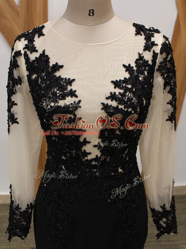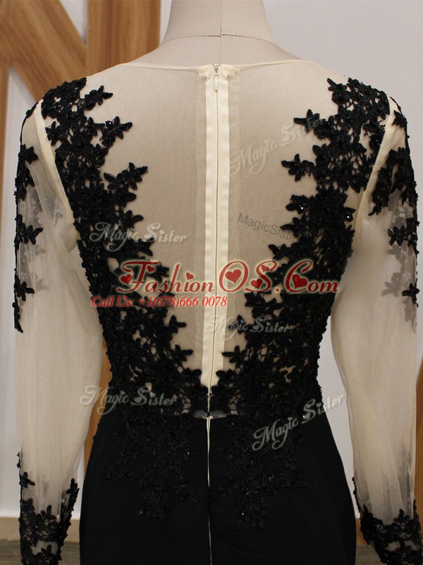 Most Popular Long Sleeves Chiffon Brush Train Zipper Mother Of The Bride Dress in Black with Lace and Appliques