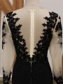 Home >  Special Occasion Dresses >  Elegant Mother of the Bride Dresses > Most Popular Long Sleeves Chiffon Brush Train Zipper Mother Of The Bride Dress in Black with Lace and Appliques