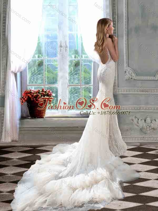 Most Popular Mermaid Straps Court Train Open Back Wedding Dress for Garden