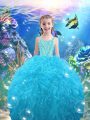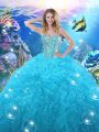 Most Popular Organza Sweetheart Sleeveless Lace Up Beading and Ruffles 15 Quinceanera Dress in Baby Blue