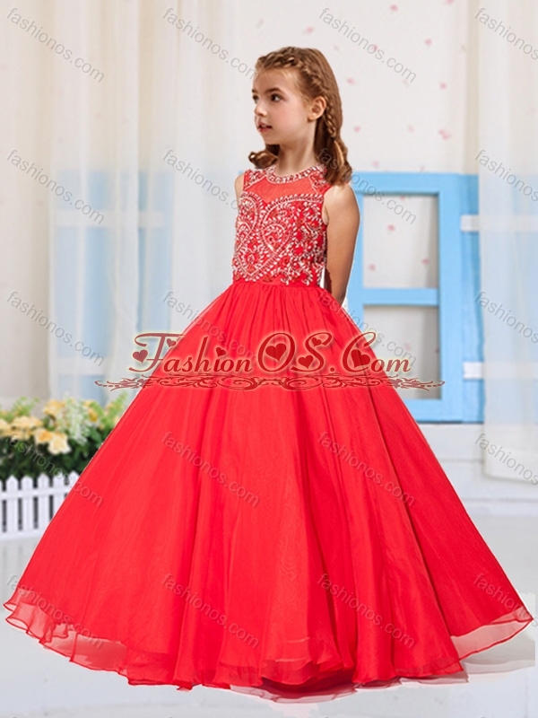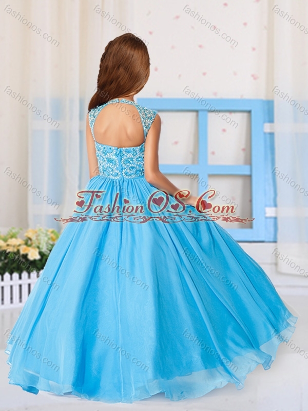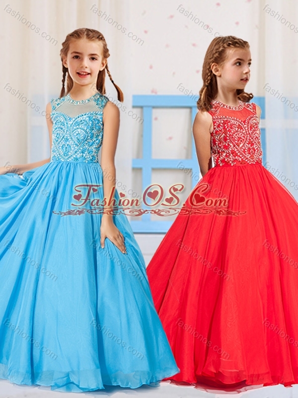 Most Popular Pincess Scoop Beaded Aqua Blue and Red Little Girl Pageant Dress