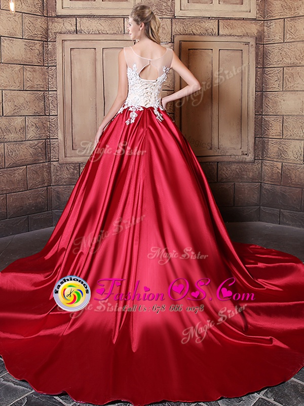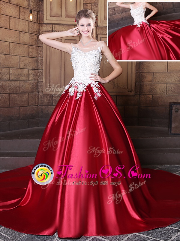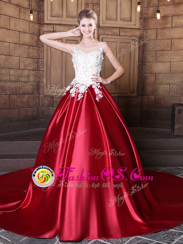 Most Popular Scoop Sleeveless Elastic Woven Satin Quinceanera Gown Lace and Appliques Lace Up