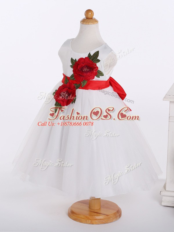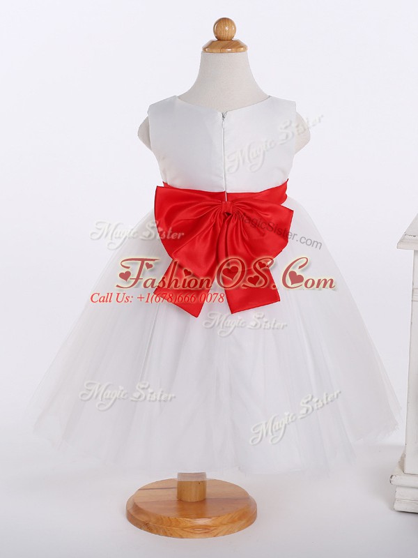Most Popular Scoop Sleeveless Zipper Child Pageant Dress White Tulle