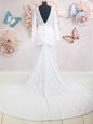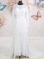 Most Popular Scoop White Empire Beading and Belt Wedding Gowns Zipper Lace Long Sleeves With Train