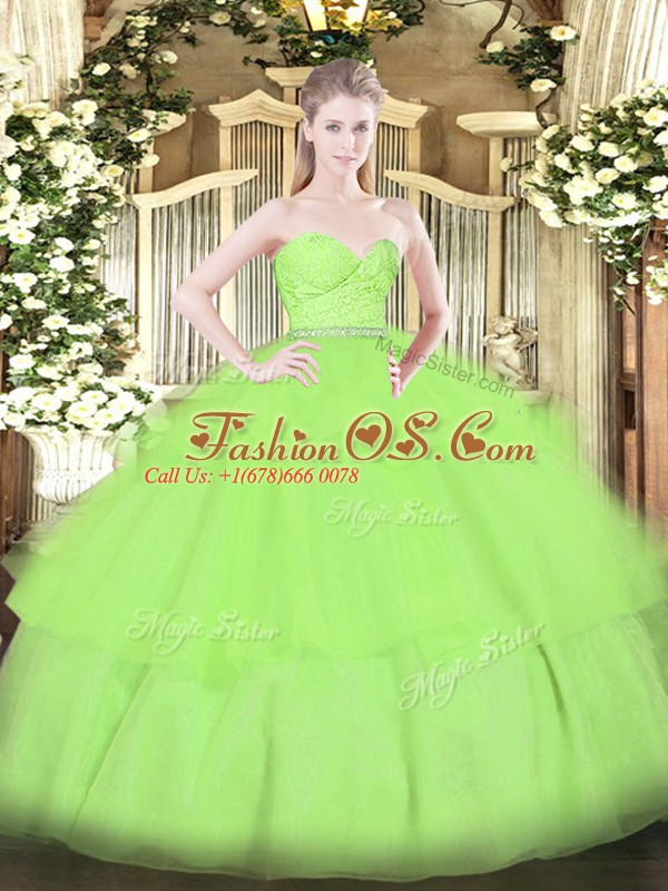 Most Popular Sleeveless Floor Length Beading and Lace and Ruffled Layers Zipper 15th Birthday Dress with