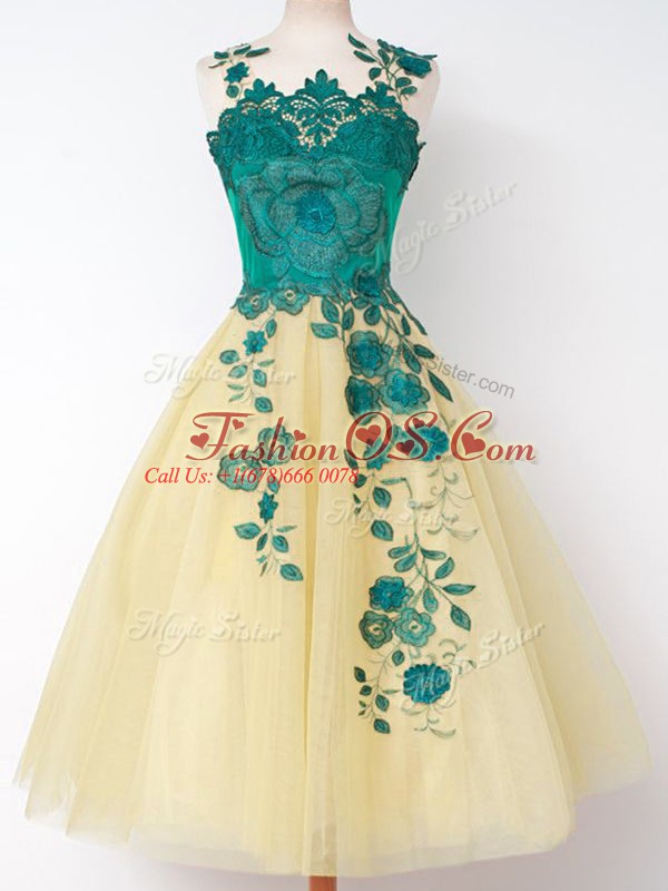Most Popular Sleeveless Lace Up Knee Length Appliques Quinceanera Court Dresses