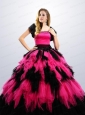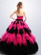 Most Popular Strapless Ruffles Quinceanera Dresses in Hot Pink and Black for 2014