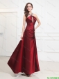 Most Popular Straps Burgundy Prom Dress with Beading for 2016